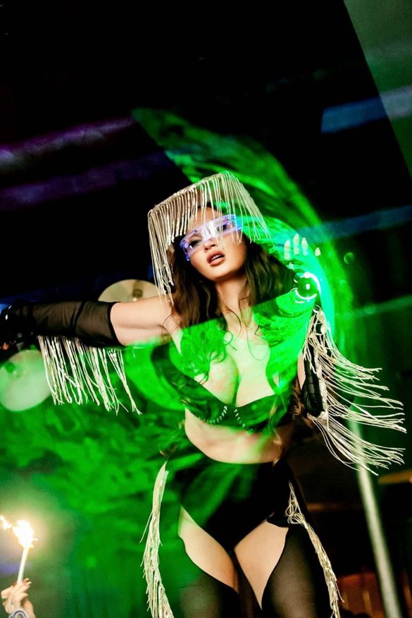 The performer moves with hypnotic grace, showcasing a live snake as part of a carefully choreographed, artistic show. Every moment is filled with suspense and beauty, creating a truly unique entertainment experience that captivates audiences of all ages.